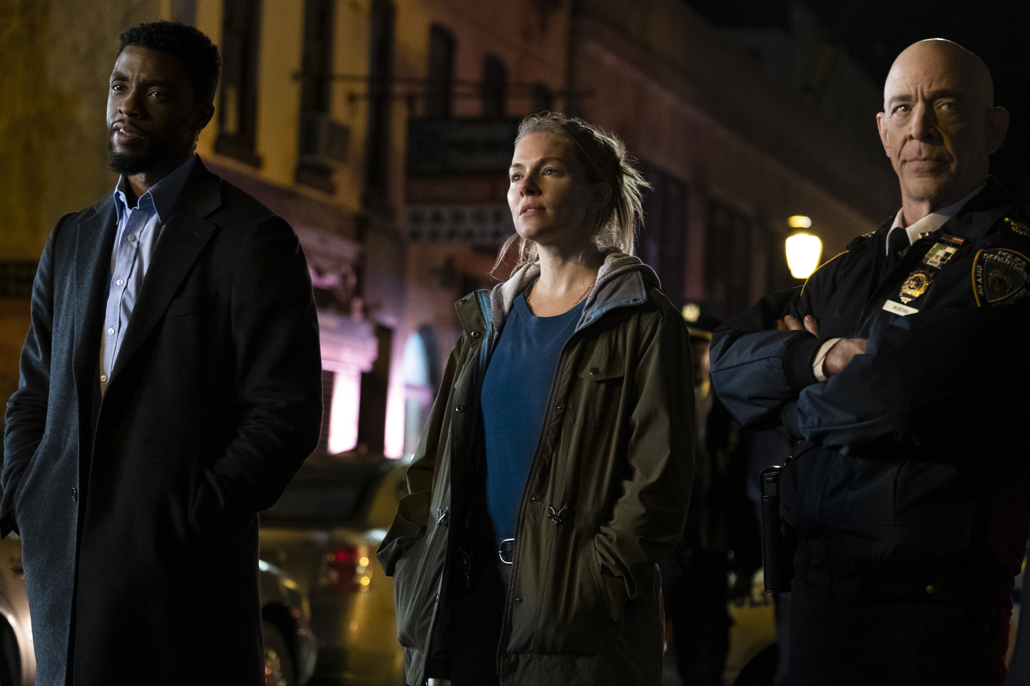 Boseman proves a decent lead without the vibranium suit, bringing just enough charisma and brooding to the slightly one dimensional role. The actor’s experience in the MCU has clearly paid off in the action department, as he really nails each of his shoot outs and chases. Unfortunately he just isn’t afforded all that much character development or depth, as a redemption arc would have made for an interesting angle following his record of delivering his own brand of violent justice. However If Beale Street Could Talk star Stephan James emerges as the real MVP of the show; his emotional and conflicted performance as Michael really makes you root for him. J.K. Simmons was also on great form as the out for blood Captain, but was unfortunately criminally underused along with the miscast and almost unrecognisable Sienna Miller.