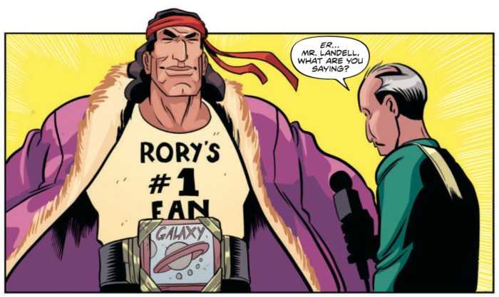 We have over the top characters, and Rory Landell is the fighter that causes all the trouble in the first place. When he airs his views live proclaiming himself “Champion of the universe” while claiming that “There could be a Martian,” and he would have him “laid out on his martian back”, you know that powers greater than ours will be raising an eyebrow in disapproval. Now you have to admit it’s a great concept, and luckily the writers know how to pitch the story. It has some great lines and set pieces, and the artwork helps push this forward.