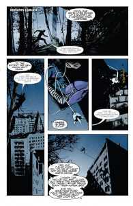 and scheme against the red of the monstrosities the Dying One has created really allows the scenes to stand out. It calls to mind an older generation of graphic novels that I used to read, making the scenes visceral and raw without overstated gore. Roberto Re La Torre seems to have mastered the art of Ninja-K’s fluid movement and this is evident throughout the issue, whether the fight or fleeing each panel gives a sense of motion and grace that a reader wants to see from a world class Ninja.