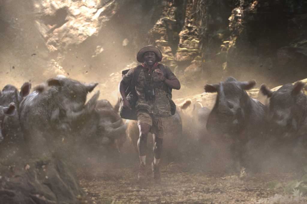 To be honest the plot isn’t really what we focus on, instead it’s the characters, their interactions and development as the story races by. The cast including Dwayne Johnson, Jack Black, Karen Gillan and Kevin Hart have great fun playing against type, with Jack Black really ramping up the camp as he channels his selfie obsessed teenage female counterpart. The set pieces are genuinely thrilling, one of the highlights being a flight in a canyon in a damaged helicopter being pursued by a herd of rhino’s – you won’t get that in Mission Impossible! In fact most of the action feels like classic Indiana Jones, you can’t go wrong with that.