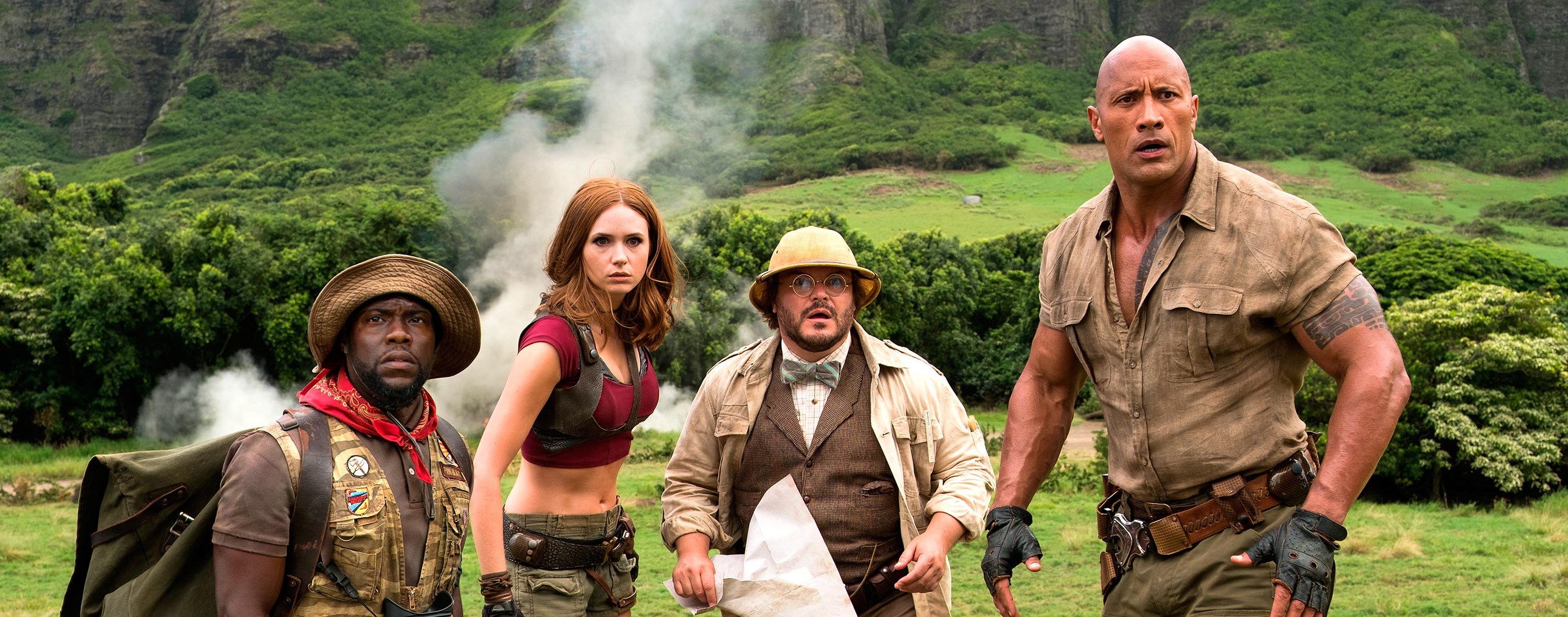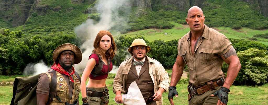 To be honest the plot isn’t really what we focus on, instead it’s the characters, their interactions and development as the story races by. The cast including Dwayne Johnson, Jack Black, Karen Gillan and Kevin Hart have great fun playing against type, with Jack Black really ramping up the camp as he channels his selfie obsessed teenage female counterpart. The set pieces are genuinely thrilling, one of the highlights being a flight in a canyon in a damaged helicopter being pursued by a herd of rhino’s – you won’t get that in Mission Impossible! In fact most of the action feels like classic Indiana Jones, you can’t go wrong with that.