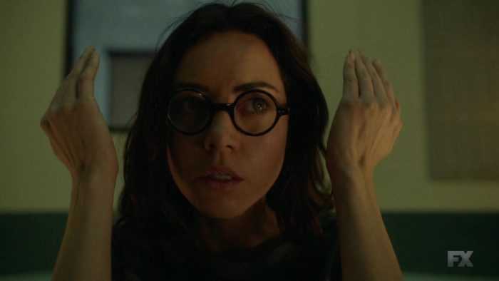 In one of the most disorientating camera sequences ever, ‘Chapter 12’ kicks off with Lenny locked in an intriguing upside-down room in the Division 3 headquarters, and is interrogated by Clark, Ptonomy, and eventually David. Lenny tries to convince them that she’s now on their side and blames the whole ‘evil Lenny’ act on trying to appease the Shadow King. She tries to paint herself as the victim to Clark and David as she recounts her traumatic past; the time spent with her alcoholic grandmother, her parents’ divorce and her father’s obsession with preteen porn. The thing about Lenny though is that she’s just as unreliable as David, is she really telling the truth about her past, or simply making up an alternate identity? It really doesn’t help that her eyes constantly dart around the room and she’s shifting the entire time she’s talking to her interrogator.
