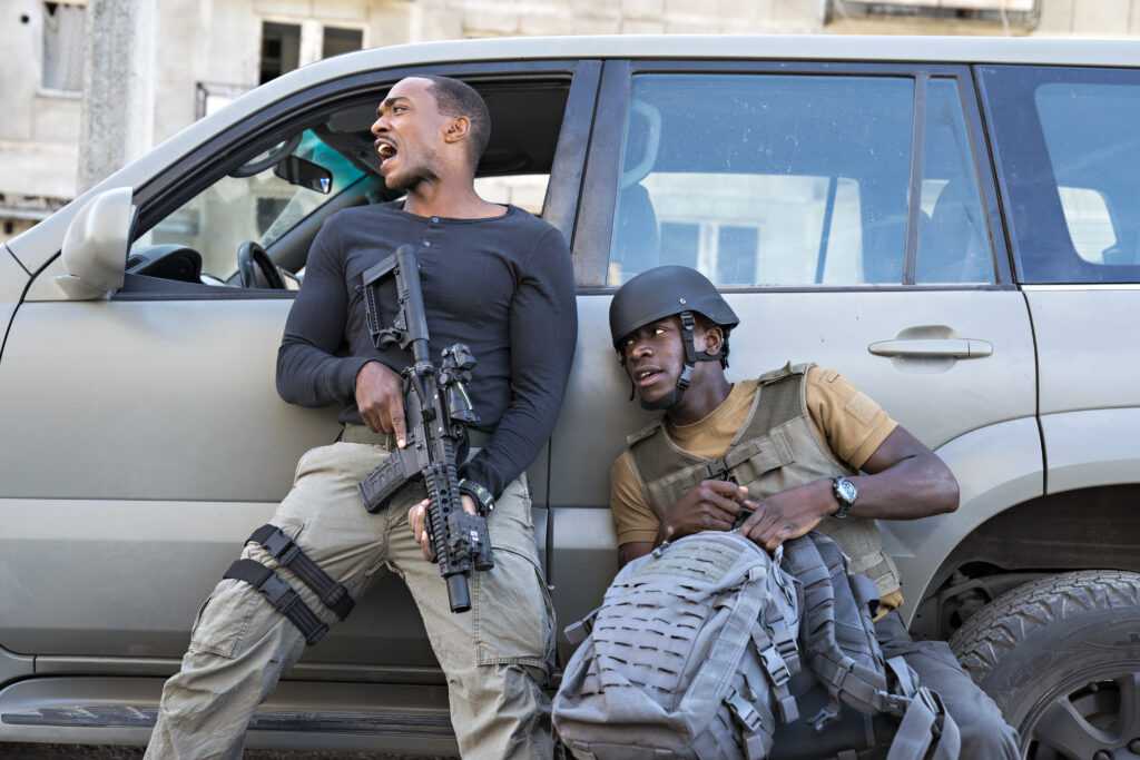 Rookie drone pilot, Lieutenant Harp (Damson Idris) is sent into the field as punishment for not following orders and killing two Marines (let’s just forget that he actually saved 38 out of 40 for the purpose of the plot!) He’s thrown straight in at the deep end as he’s tasked with accompanying Captain Leo (Anthony Mackie) on a dangerous mission to deliver some vaccines to locals.