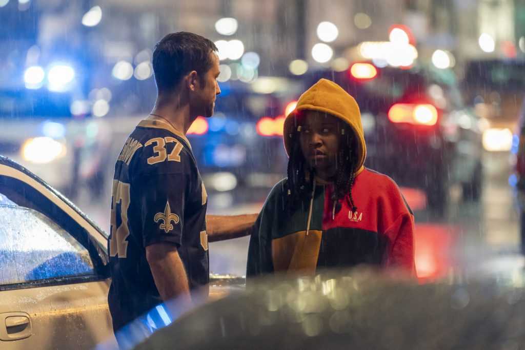 One key fact that sets this apart from other superhero films is the fact that there are obvious side effects and consequences to powers, with the pill altering users significantly. The drug dealer has burns and scars from his fire power, Biggie (Rodrigo Santoro) has distinctly loose skin around his neck from his power. This fact helps ground the super-powered elements with the crime thriller narrative, particularly with the gritty, urban aesthetics of New Orleans lit by neon-esque colour.