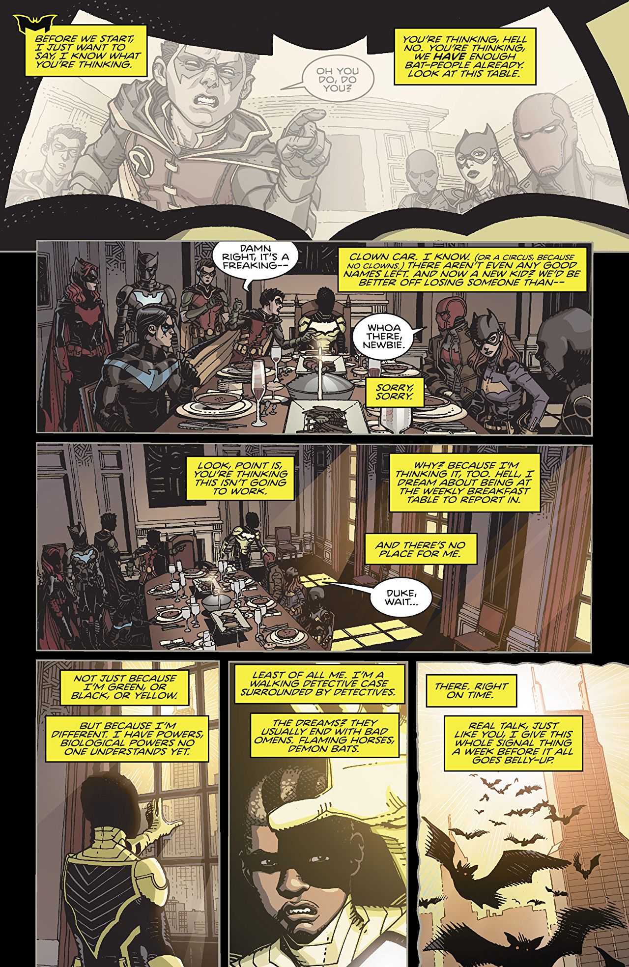 Duke Thomas finally has his own costume and and code name – Signal. It’s his time to step out into the light to become Gotham’s daytime protector, as a surge in teenage meta-humans have started attacking the city. Can Duke figure out the truth behind the rise in meta-humans whilst also working out his new powers?