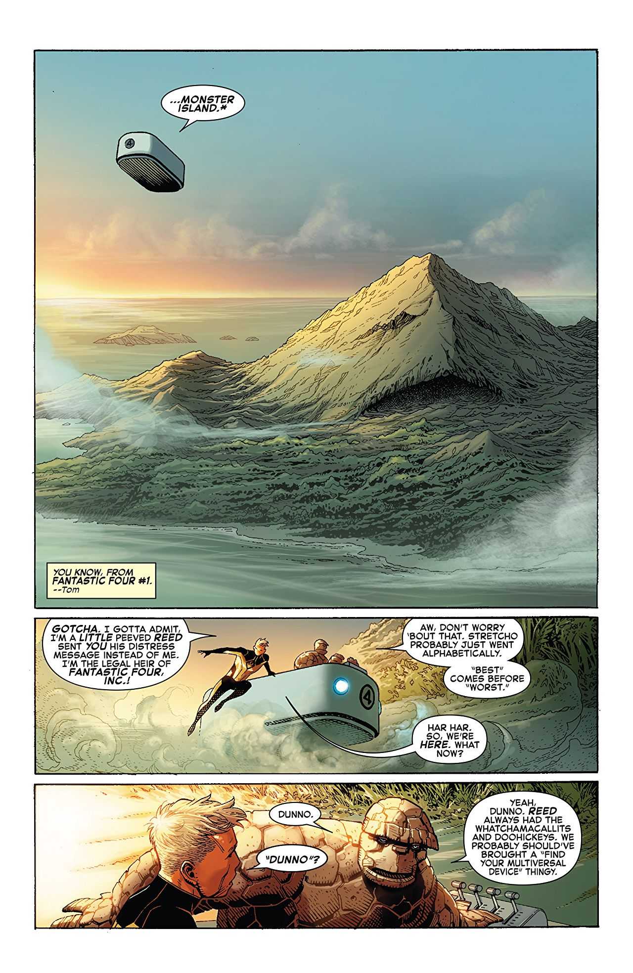 The Thing and The Human Torch are on a mission to find Reed’s device that he has hidden in the location of their first adventure – leading them to Monster Island! Meanwhile Doctor Doom is hot on their heels in search of the multiplane, can he outsmart the two remaining members of the Fantastic Four and find the tool first?