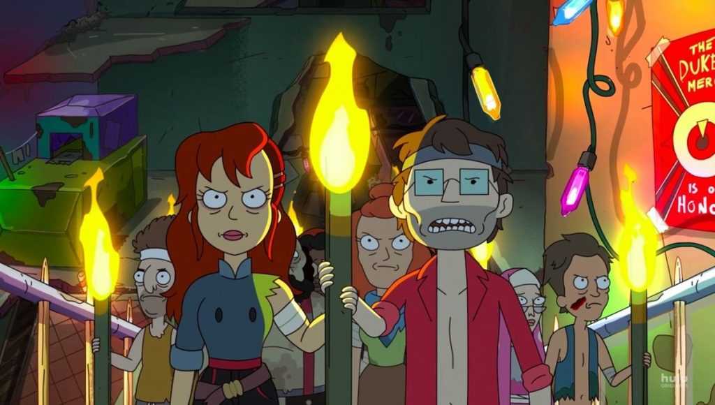 Possibly the most distracting however is the animation style which is pretty much the same as the Adult Swim series, even down to the same lip expression and end credits. There’s plenty of sci-fi tech and weapons which will undoubtedly please most, along with Roiland’s siganture gory set pieces. There’s also plenty of hilarious pop culture references and easter eggs dotted throughout the series (even Paddington can’t escape!), with a particularly significant cameo featured in the season finale.