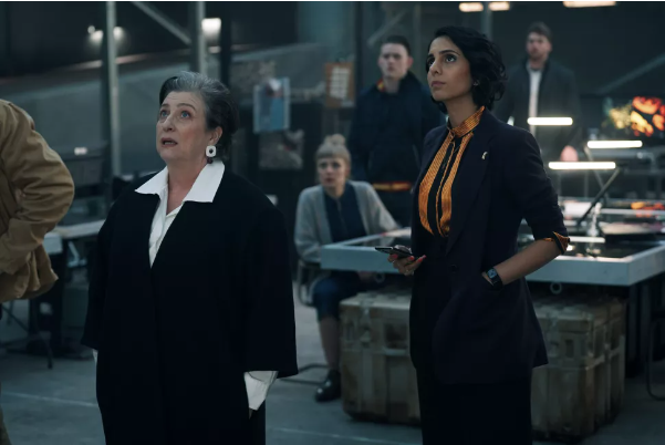 Paapa Essiedu’s (Gangs of London, I May Destroy You) performance is a perfect entry point for the viewer, portraying a believable disbelief and shock at the time jump revelations. However, his arc quickly evolves following a personal tragedy, and his dynamic with Tom Burke is particularly fascinating once the two characters connect. Anjli Mohindra (Vigil, The Bodyguard) also brings another compelling performance as the quick witted agent Archie, who’s devote loyalty is surprsing given her backstory – which is also cleverly interwoven throughout. Viewers may also be surprised by beloved actor Caroline Quentin’s performance as Queen bee Wes, who’s steadfast drive to protect the greater good comes at a great cost – she really does rock those suits though!